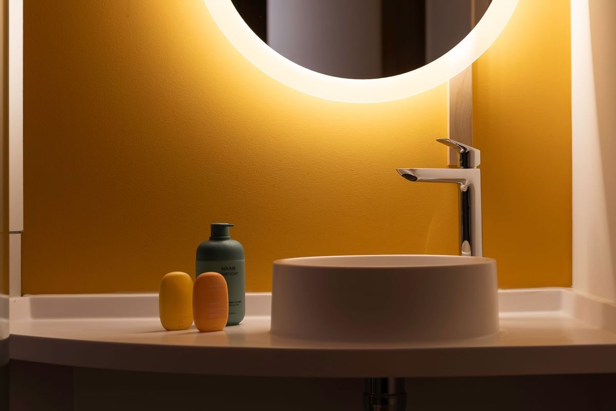 • Le tri sélectif disponible en chambre grâce aux poubelles de tri sous le lavabo