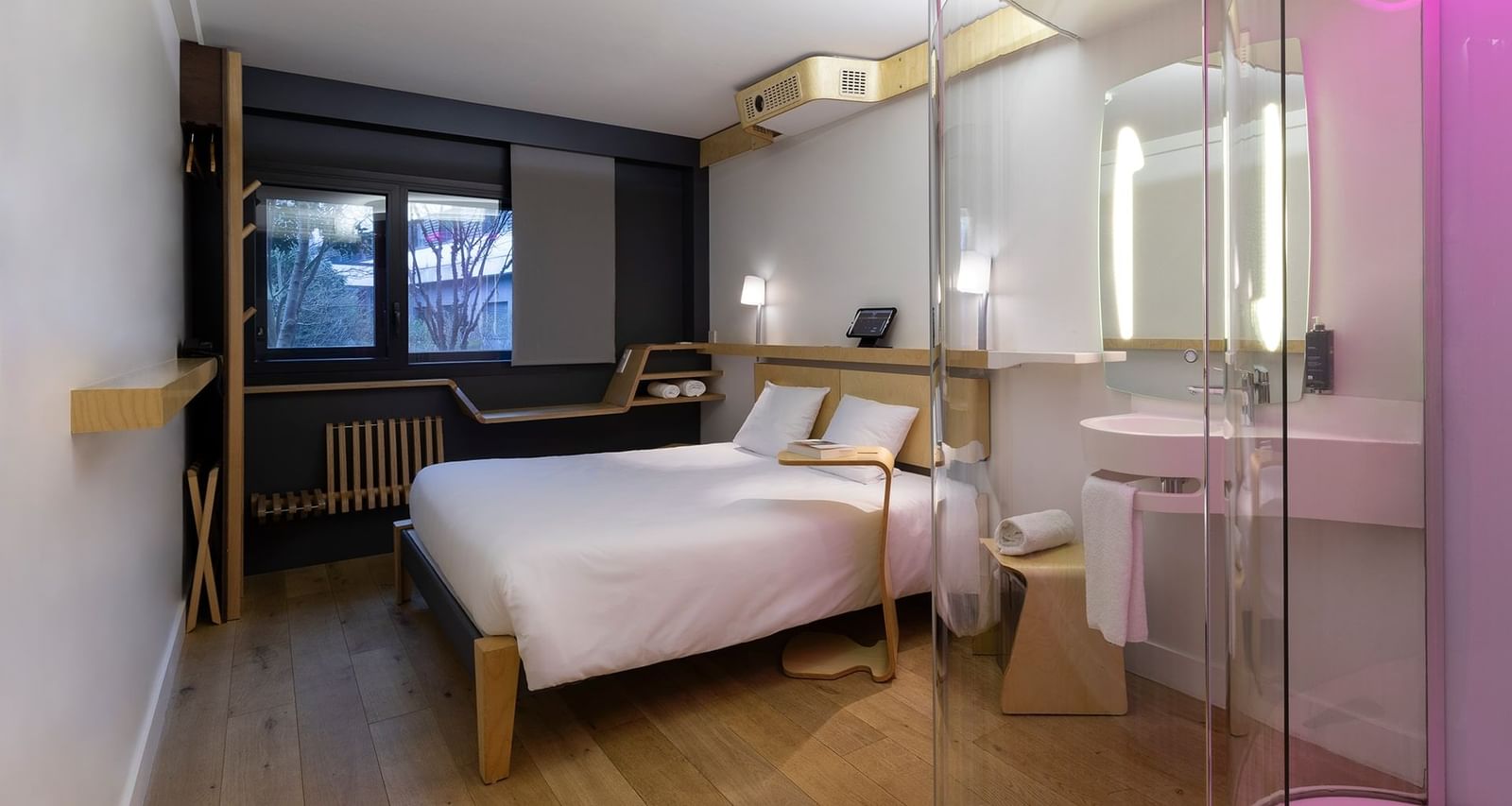 Pour le plaisir des petits comme des plus grands, toutes nos chambres sont équipées d’un vidéoprojecteur diffusant une image de très haute qualité sur plus de 2 mètres de large. Des enceintes sont intégrées dans la tête de lit pour un son unique et un effet home-cinema garanti ! La Chromecast intégrée vous permettra de diffuser vos contenus préférés comme à la maison.